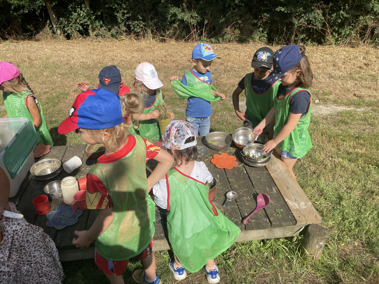 – jeux libres avec matériel de cuisine et écoute des bruits de la nature avec l’utilisation de l’amplificateur de sons.