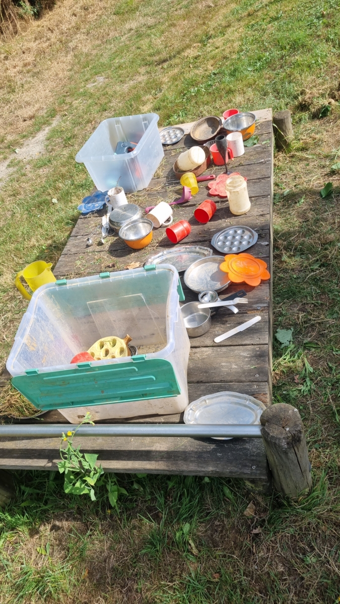 – jeux libres avec matériel de cuisine et écoute des bruits de la nature avec l’utilisation de l’amplificateur de sons.