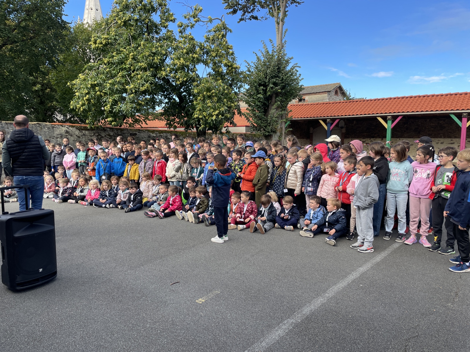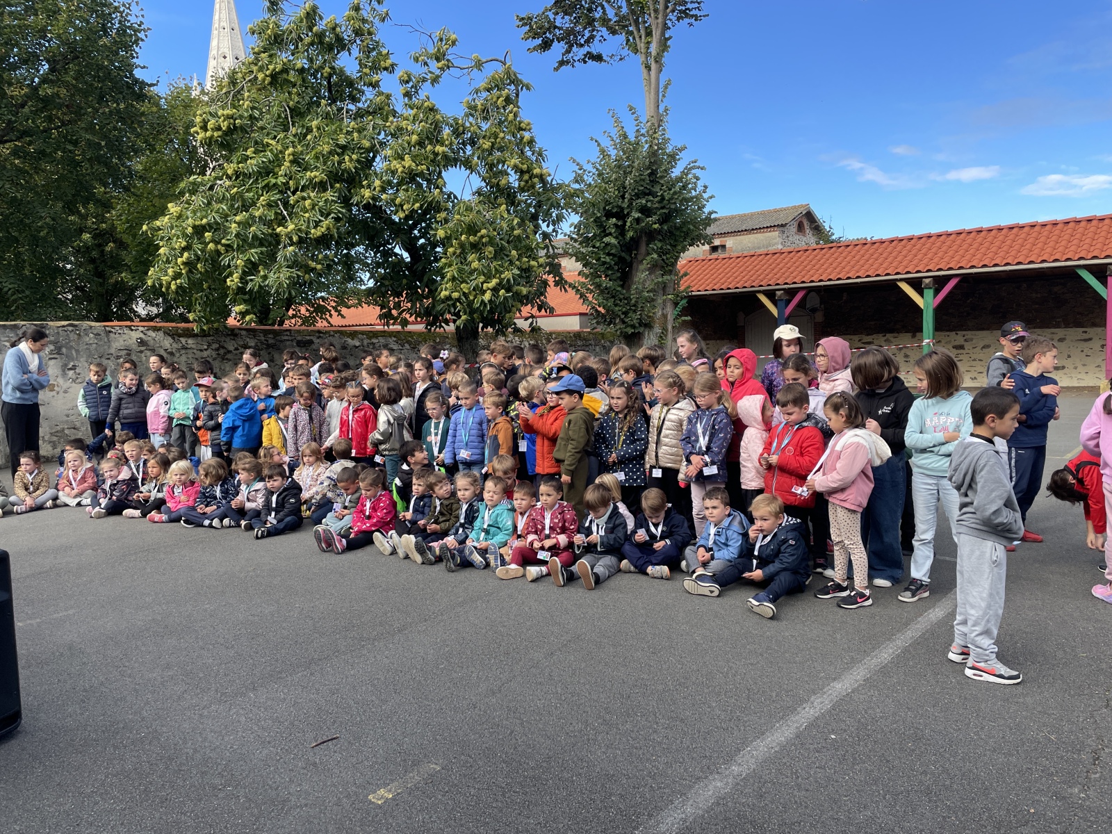 Mardi 23 septembre, tous les enfants du RPI se sont réunis à l’école de Boulogne pour vivre le temps fort de rentrée. Les élèves scolarisés à l’école de La Merlatière se sont déplacés à pied d’une commune à l’autre. A leur arrivée, l’équipe éducative du RPI a commencé par se présenter puis les élèves ont entonné le chant “C’est la rentrée”. Petits et grands ont ensuite été mélangés sur trois pôles pour réaliser le jeu “Bouge avec les régions” proposé dans le dispositif “Ma rentrée avec l’UGSEL”. Le but du jeu était de se déplacer de région en région via des défis physiques. Les élèves faisaient après chaque défi un recueil d’informations : le nom de chaque région et sa caractéristique sportive et ce, sur une carte de France. La matinée s’est achevée par un pique-nique, moment toujours très apprécié des enfants. Pour clôturer ce temps fort, les élèves ont repris en chœur une dernière fois le chant avant le retour des plus grands à l’école de La Merlatière.