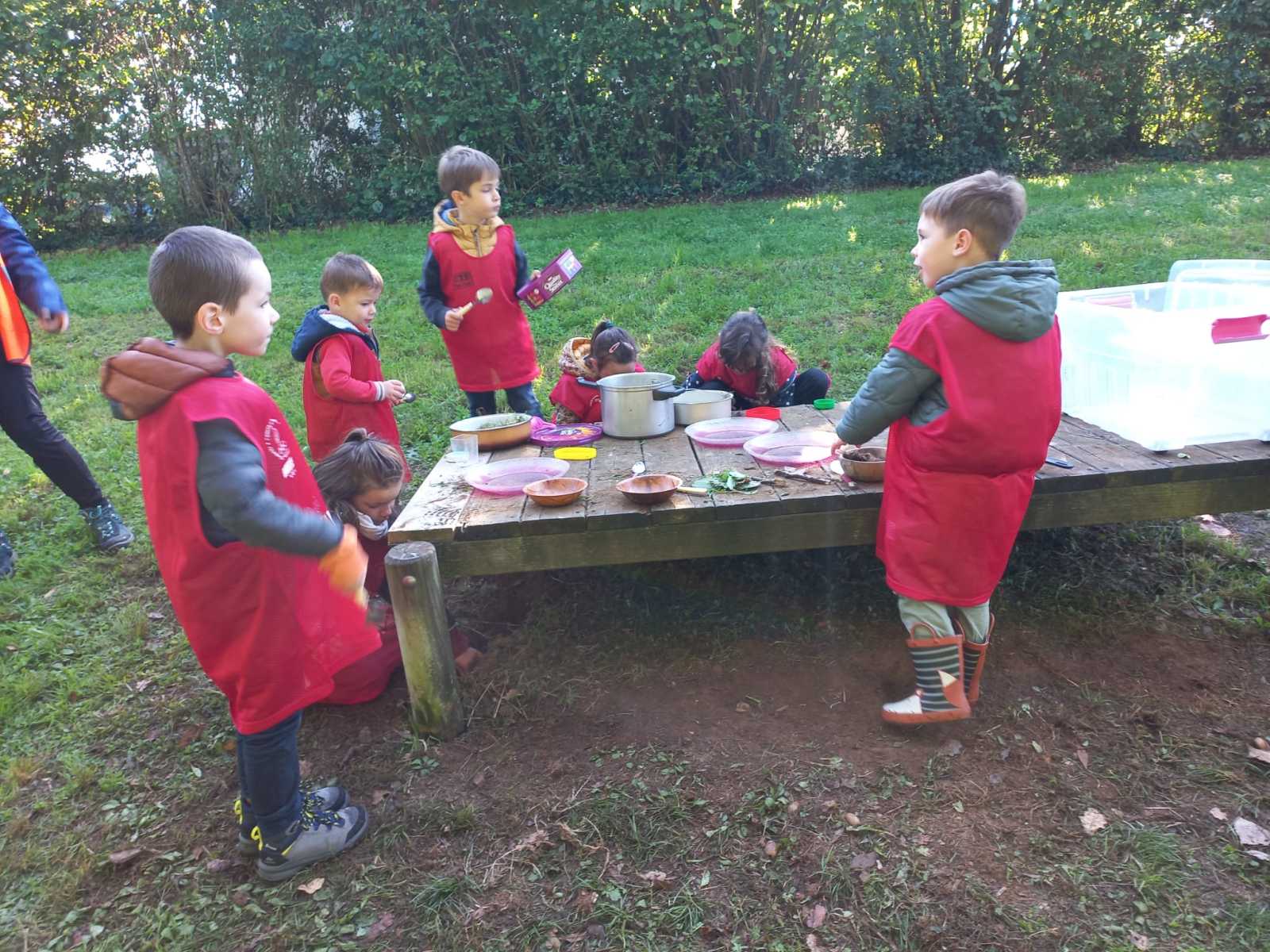 Pour cette première session d’école dehors, le thème était d’apprendre à se connaître et vivre un moment en groupe tous niveaux confondus (de la PS au CP).