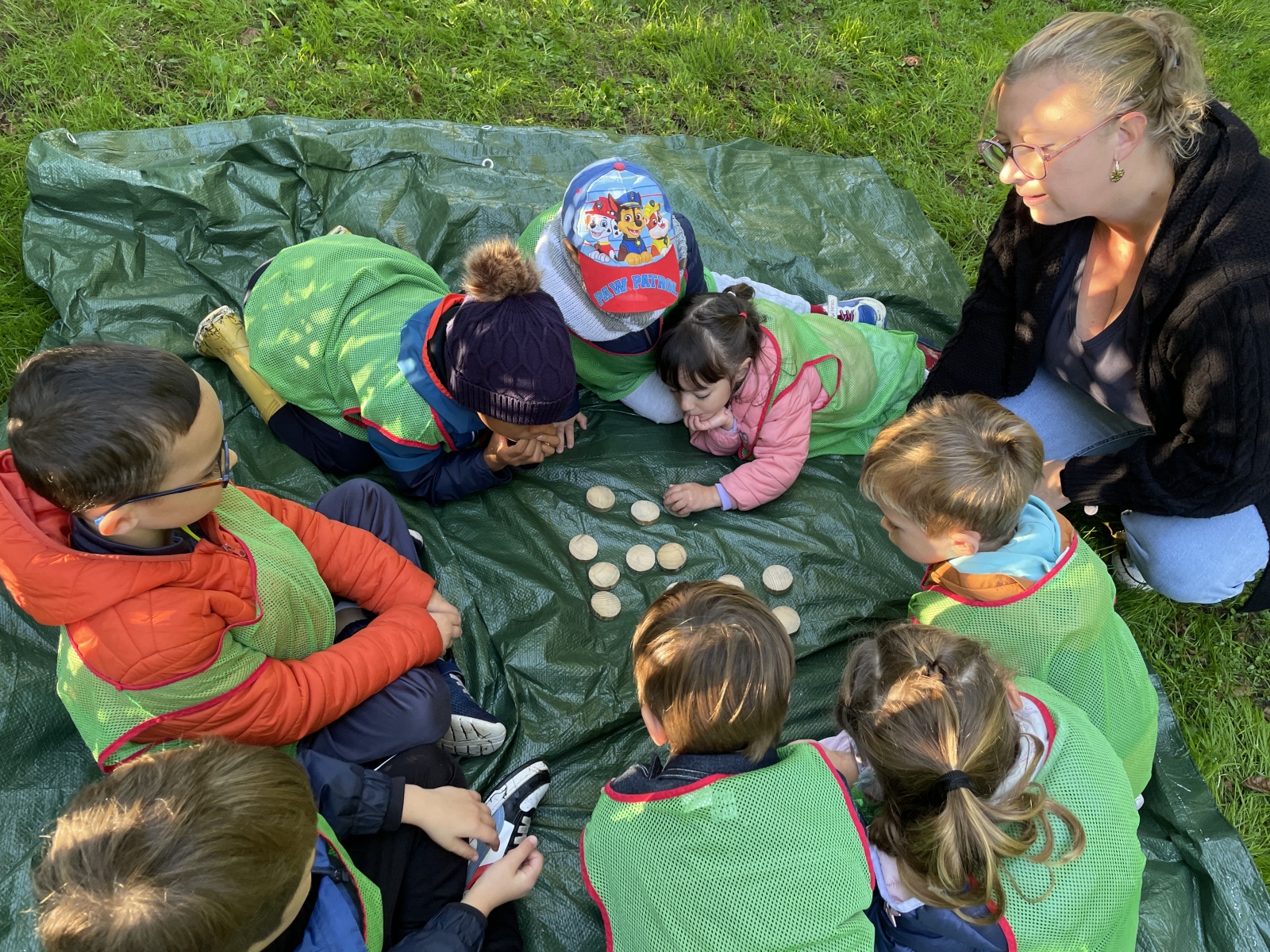 Pour cette première session d’école dehors, le thème était d’apprendre à se connaître et vivre un moment en groupe tous niveaux confondus (de la PS au CP).