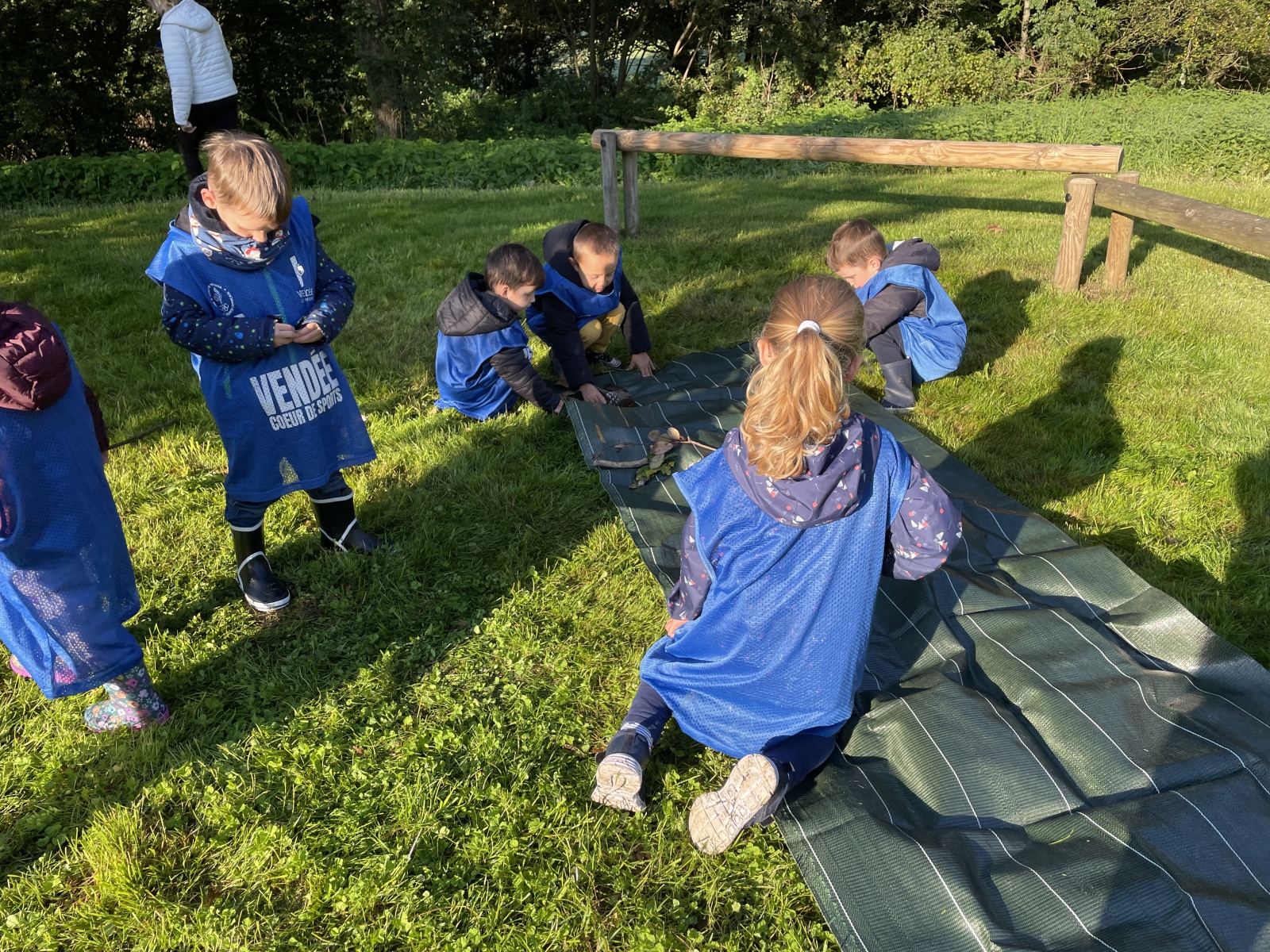 Pour cette première session d’école dehors, le thème était d’apprendre à se connaître et vivre un moment en groupe tous niveaux confondus (de la PS au CP).