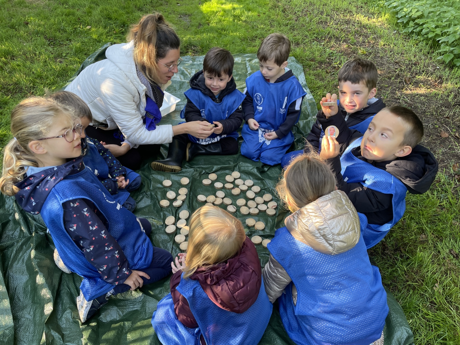 Pour cette première session d’école dehors, le thème était d’apprendre à se connaître et vivre un moment en groupe tous niveaux confondus (de la PS au CP).