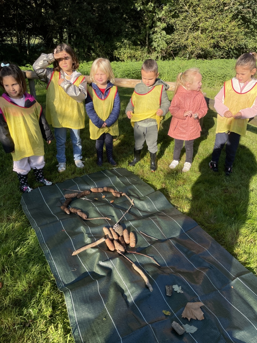 Pour cette première session d’école dehors, le thème était d’apprendre à se connaître et vivre un moment en groupe tous niveaux confondus (de la PS au CP).