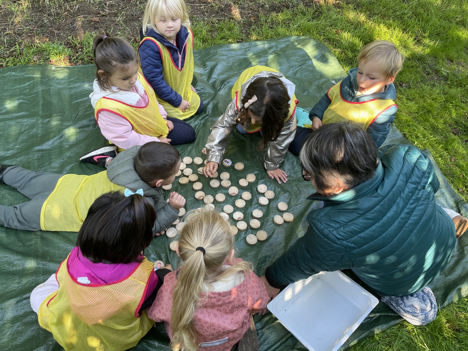 Pour cette première session d’école dehors, le thème était d’apprendre à se connaître et vivre un moment en groupe tous niveaux confondus (de la PS au CP).