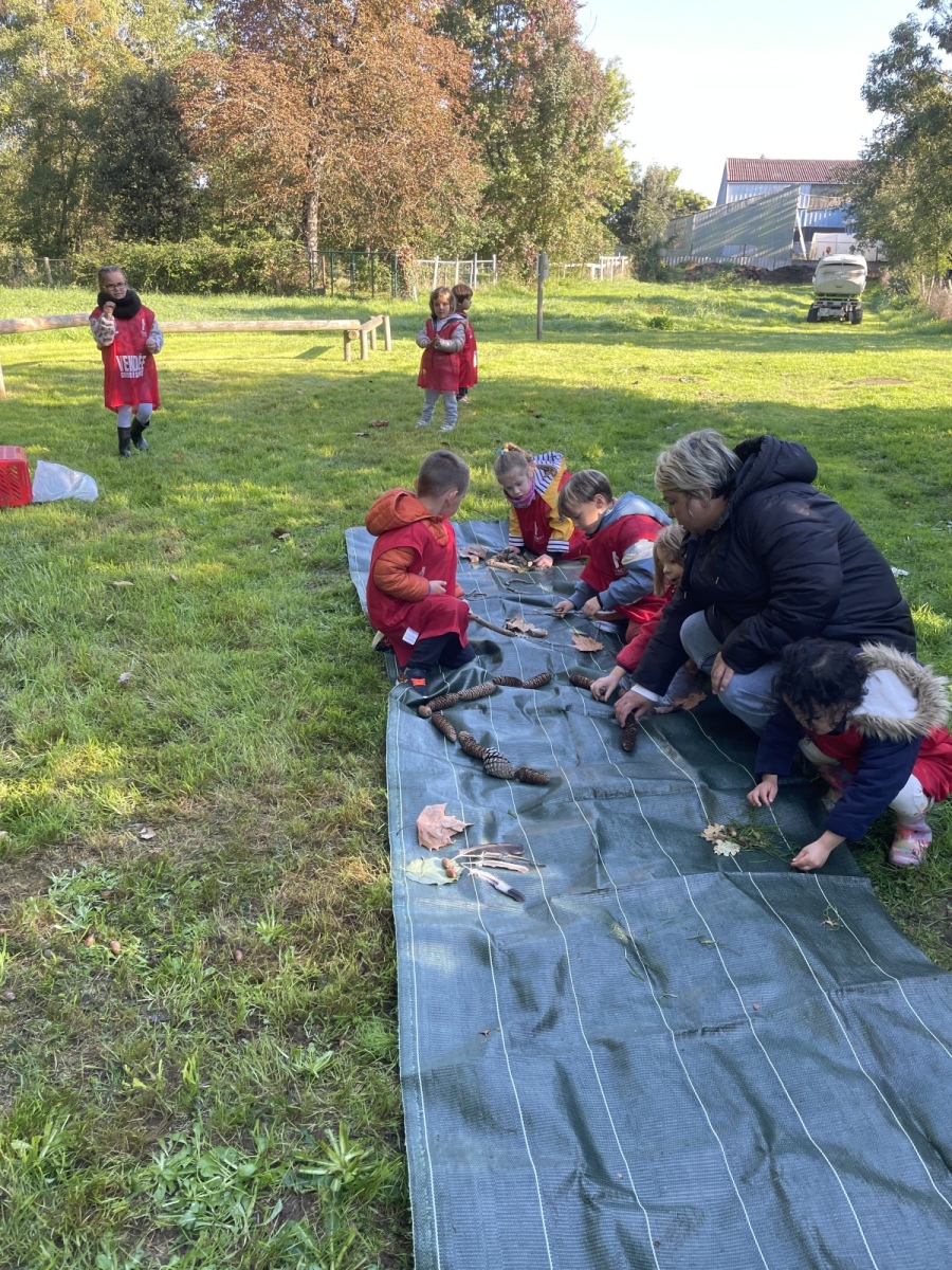 Pour cette première session d’école dehors, le thème était d’apprendre à se connaître et vivre un moment en groupe tous niveaux confondus (de la PS au CP).
