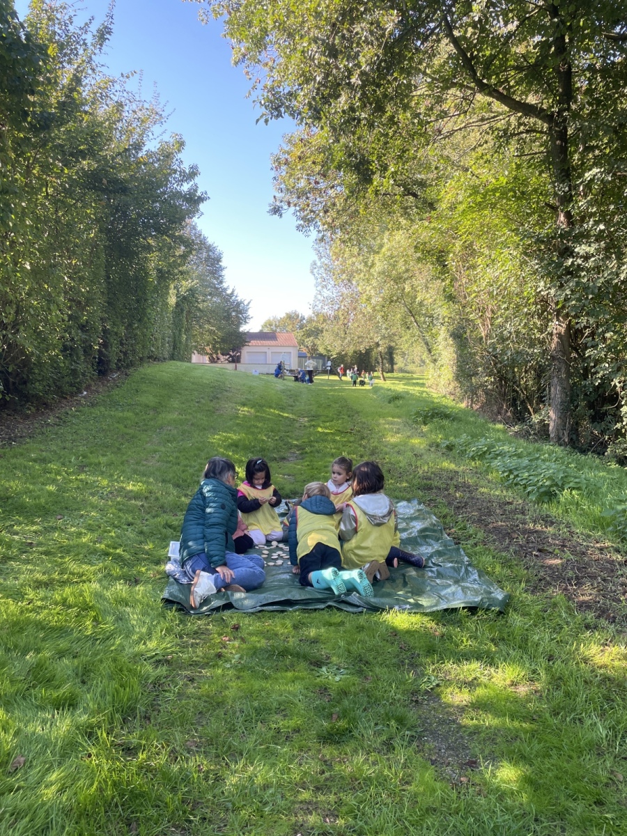 Pour cette première session d’école dehors, le thème était d’apprendre à se connaître et vivre un moment en groupe tous niveaux confondus (de la PS au CP).