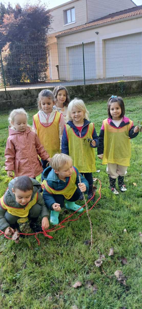 Pour cette première session d’école dehors, le thème était d’apprendre à se connaître et vivre un moment en groupe tous niveaux confondus (de la PS au CP).