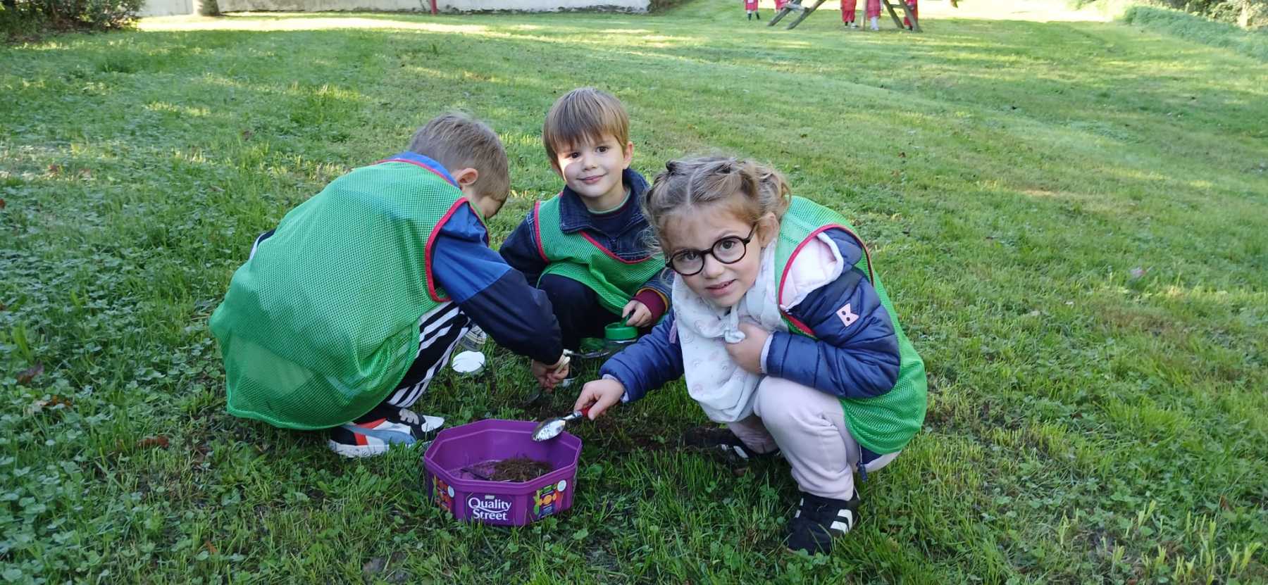 Pour cette première session d’école dehors, le thème était d’apprendre à se connaître et vivre un moment en groupe tous niveaux confondus (de la PS au CP).