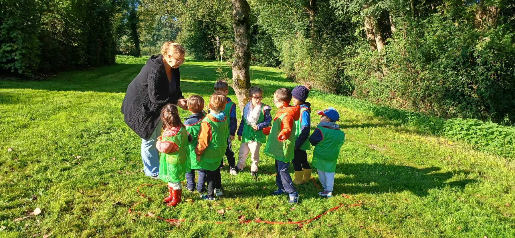Pour cette première session d’école dehors, le thème était d’apprendre à se connaître et vivre un moment en groupe tous niveaux confondus (de la PS au CP).
