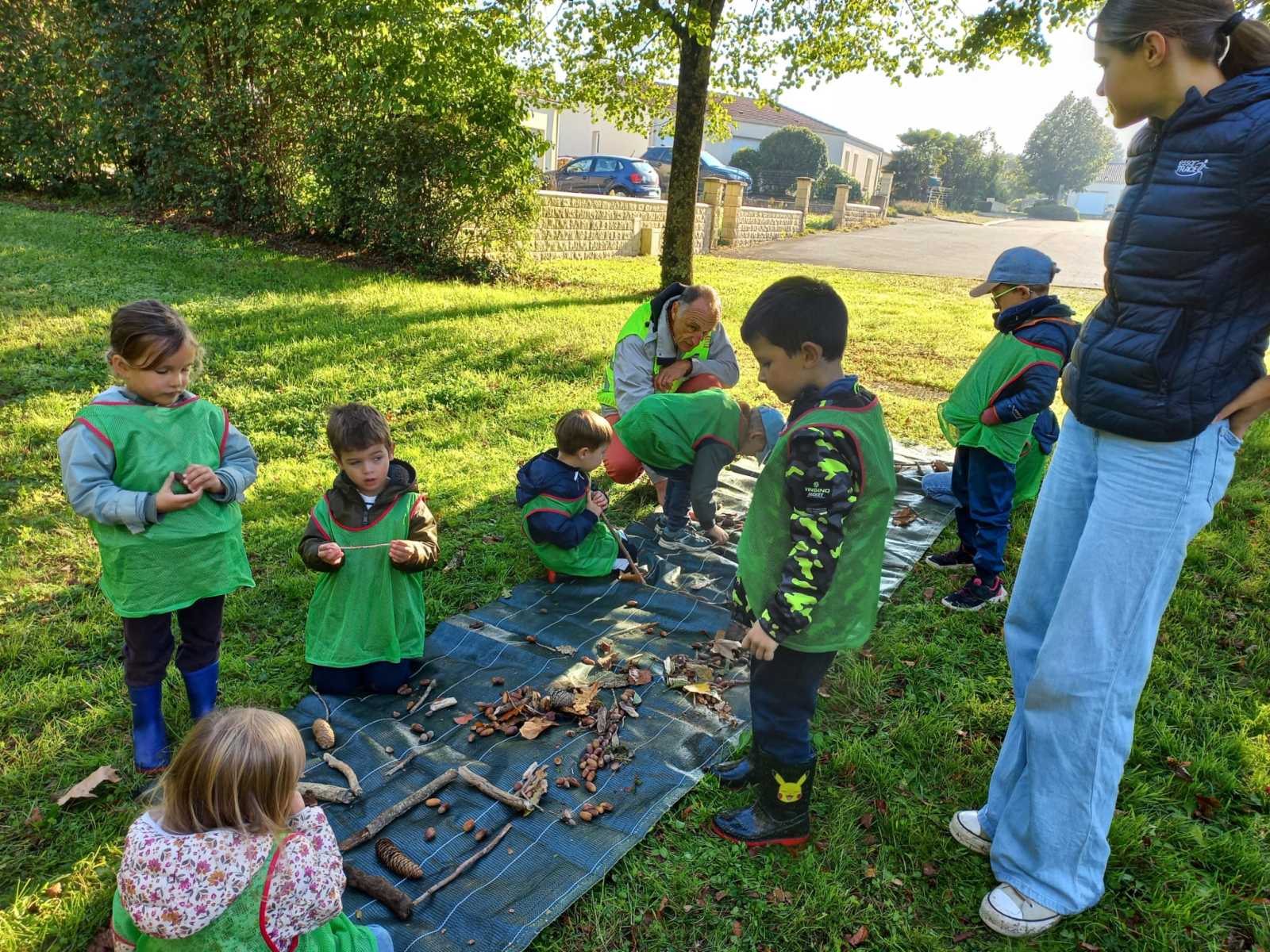 Pour cette première session d’école dehors, le thème était d’apprendre à se connaître et vivre un moment en groupe tous niveaux confondus (de la PS au CP).