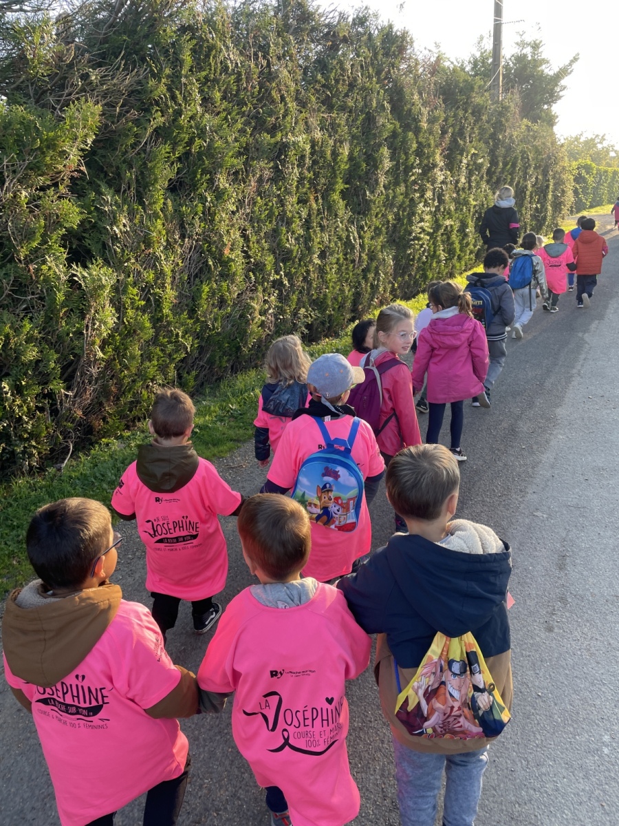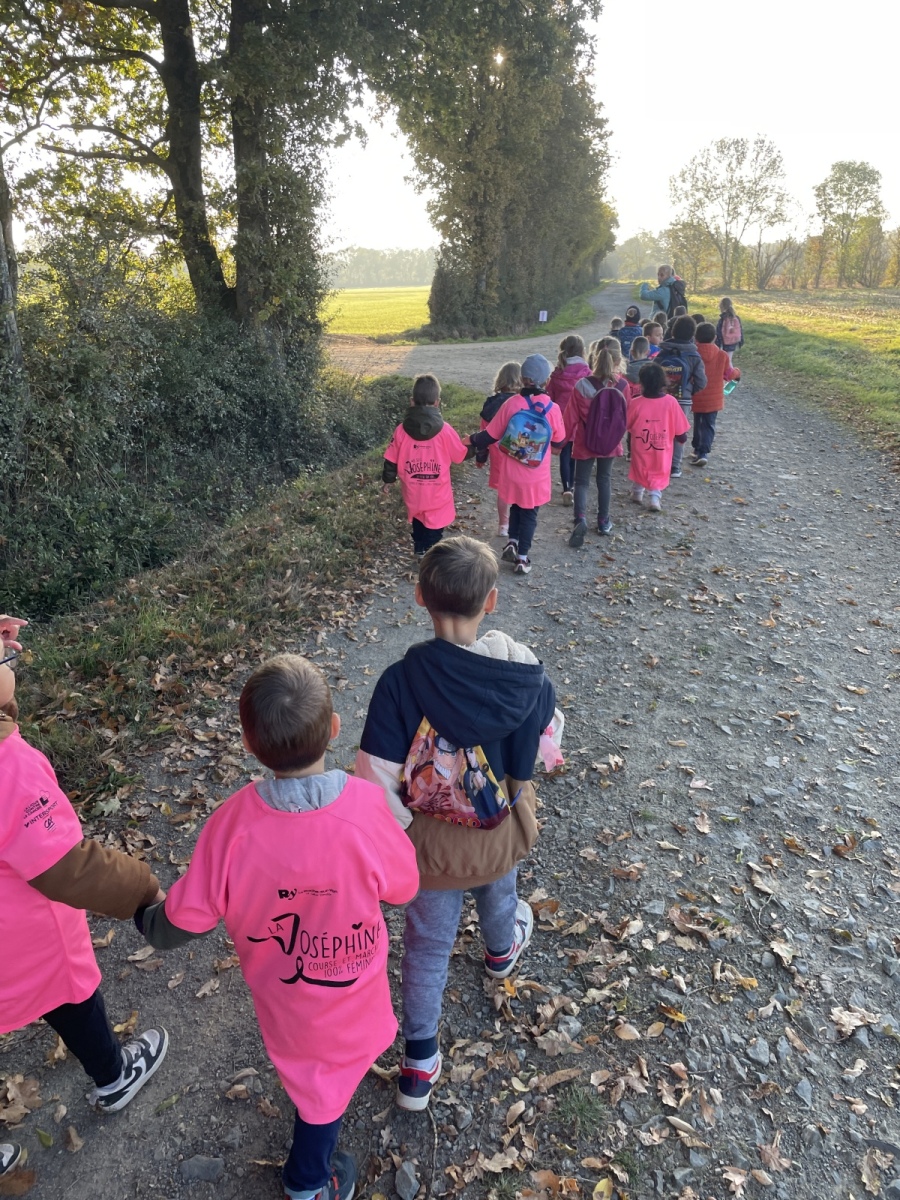 Ce jeudi 16 octobre, les élèves et l’équipe pédagogique ont profité du soleil pour réaliser le parcours de la Joséphine, tous vêtus d’un peu de rose. Plus de 6 kms ont été parcourus par les MS GS CP et un peu plus de 3 kms pour les PS et MS.