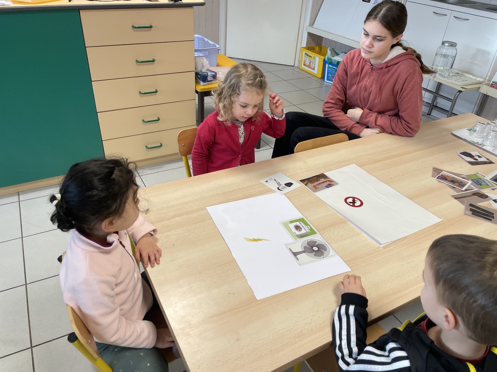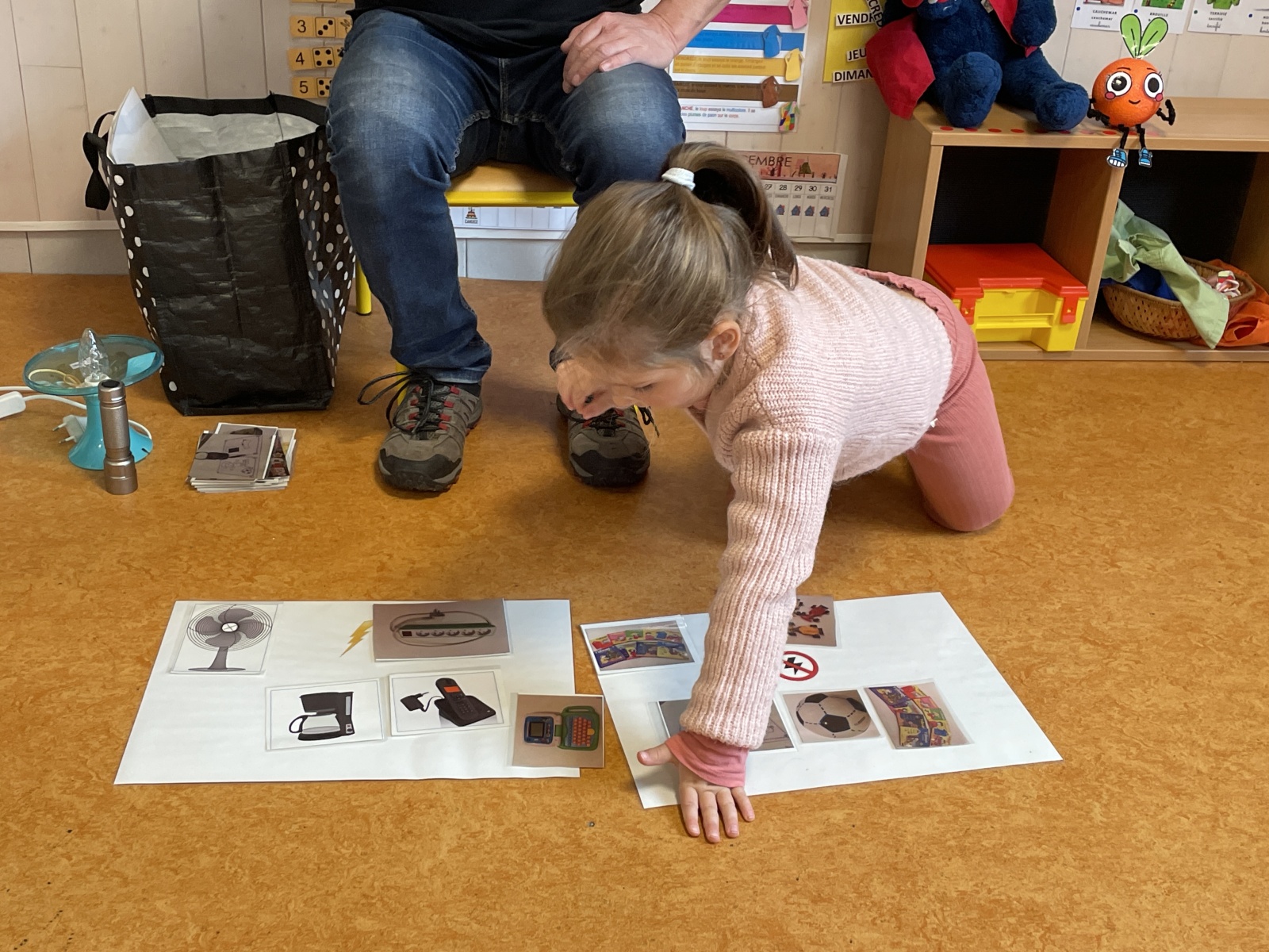 Afin de sensibiliser les élèves aux gestes qui protègent notre planète Terre, les enfants vont bénéficier de 3 séances avec François-Xavier, intervenant pour le programme Eco-Pousse. Cette semaine, il est venu accompagné de Eco-Pousse. Ensemble, nous avons cherché dans la classe où on trouve de l’électricité. Puis les enfants ont joué à un jeu de tri d’images en fonction d’un critère : utilise de l’électricité ou n’utilise pas d’électricité. Ce premier temps a été apprécié par tous les enfants.