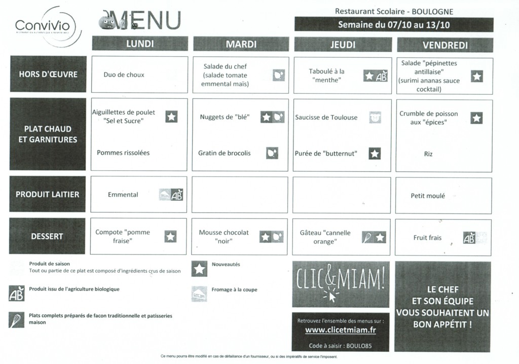 MENU 7 OCT AU 13 OCT